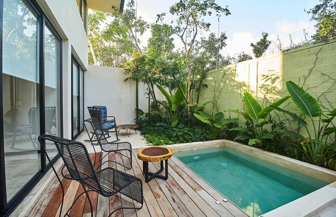 3-slaapkamer Don Quijote - Private Pool & Beach Club Access Tulum Pueblo appartementen bieden uitzicht op de tuin en bevinden zich op 3 km afstand van de Cenote Cristal in Tulum Pueblo. Gasten kunnen gebruikmaken van Wi-Fi voor zowel zaken als vrije tijd.